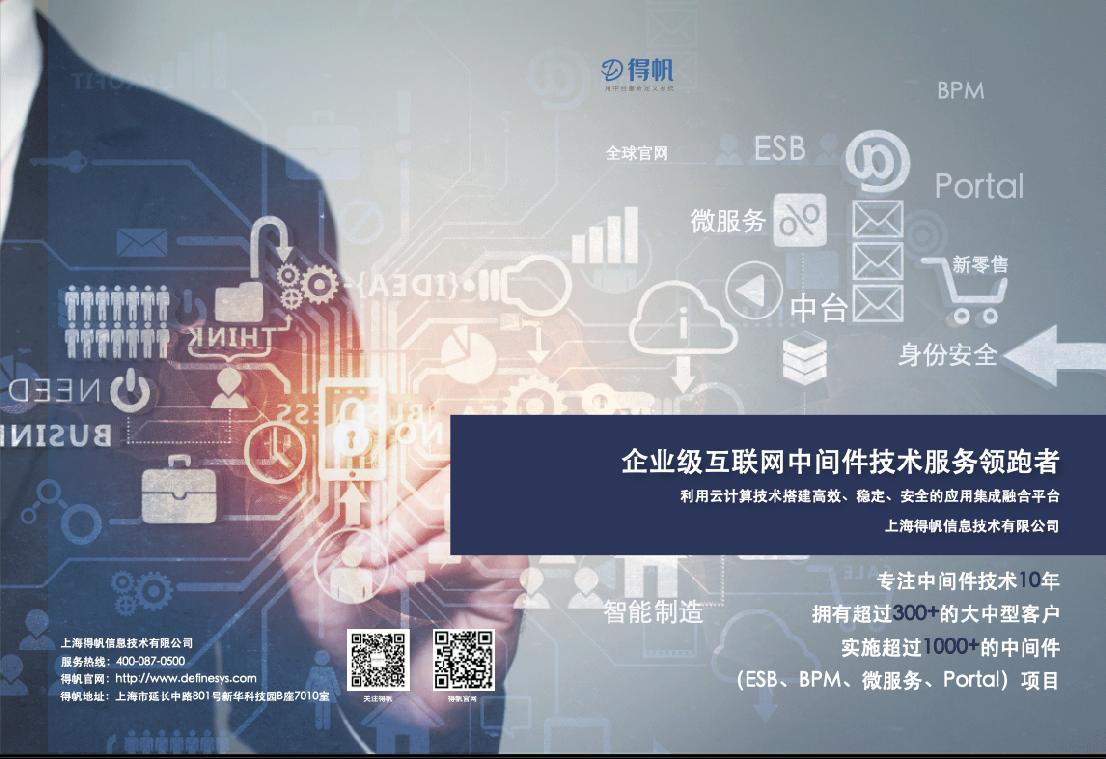上海得帆信息技术有限公司是国内企业级中间件(ESB、Portal、BPM、微服务等)和中间件云产品领域人员规模最大、服务范围最广、客户群体最多的 IT 咨询服务公司之一,尤在 Oracle 中间件、开源中间件和中间件云产品领域处于领导者地位。