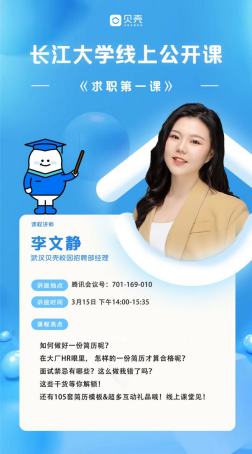 (通讯员 余珺瑞)2022年3月15日14:00,武汉贝壳找房科技有限公司校园招聘经理李文静受邀在腾讯会议为无码影片
