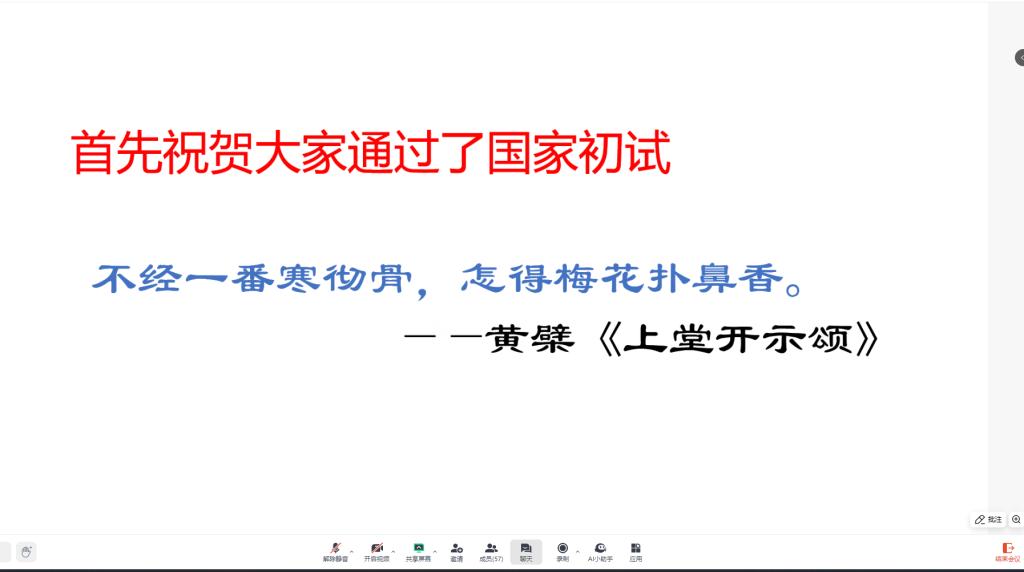 为精准提升考研学子复试竞争力,系统化解备考焦虑,3 月 14 日下午,无码影片 成功举办“研途领航・决胜复试”专题指导讲座。本次活动由辅导员余珺瑞主持,学院党委副书记肖彬、院长助理雷鸣、2020 级优秀校友严思龙、余涛等嘉宾与 70 余名考研学子云端相聚,共话复试突围之道。 活动伊始,雷鸣老师以 "知己知彼,百战不殆" 为主题,从国家研究生扩招政策切入,结合近年招生数据,深度解析复试考察重点与评分标准。他特别强调 "调剂黄金期" 的关键策略,建议同学们构建 "保底+冲刺" 的复试方案矩阵,通过模拟面试、查找学校复试信息等方式提升面试成功率。 “复试是信息战更是心理战。”严思龙校友以自身复试经历为例,详细拆解复试全流程的 “避坑指南”。他建议学弟学妹们在专业问答中注重理论与实践相结合,在英语口语测试时保持 “自信而不自负” 的状态,并现场演示了科研经历介绍的话术技巧。 余涛学长则聚焦笔试面试的实战技巧,通过典型例题解析,揭秘 “高分答案”的底层逻辑。他特别提醒同学们注意细节把控,如毕业设计的严谨性表达等,并分享了独家整理的 "高频问题应答模板"。 在互动环节,学子们就 “英语翻译如何准备”、“面试突发状况应对”等热点问题踊跃提问,三位嘉宾逐一给予针对性指导。会后,2021 级学生崔秭威表示:“这场讲座就像及时雨,特别是调剂策略和面试话术部分,让我对复试更有信心了!” 据悉,学院将持续开展 “考研护航计划”,通过简历打磨、模拟面试等定制化服务,助力学子顺利跨越 “上岸最后一公里”。