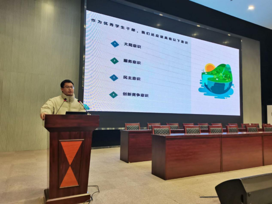 此次讲座的主题是“学生干部应具备的能力和素养”,由机械工程学院的向如老师主讲。向老师在开头就提到作为学生干部的四个意识:大局意识,服务意识,民主意识,创新竞争意识。各干部需要牢记在心。在本次培训中,授课老师给在场的每位学生干部上了精彩而有意义的每一课。特别是向老师所讲的要求学生干部必须增强的“四个意识”,准确全面地概括了学生干部应具备的能力,教导学生干部要有进取心,自信心,好奇心。此外,作为学生干部还应该拥有想象力,洞察力和组织力,这样才能更好的管理其他人。向老师对学生干部做出的独到理解,使每位学生干部都受益匪浅。