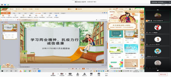在6月以团支部为单位召开了“学习两会精神,抗疫力行·诚信倡廉”为主题的团会活动,活动时间为6月1日到6月20日。