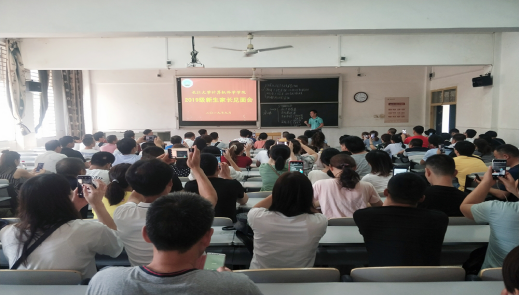 在西校区5教115教室分两场举行了2019级新生家长见面会。学院党委书记高明成、副院长詹炜、副院长宋文广、党委副书记颜学俊及学生事务办公室有关负责老师参加会议。见面会共吸引了两百余位新生家长参加,现场气氛热烈。