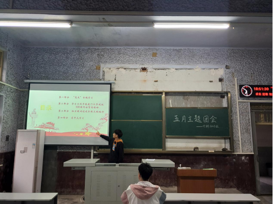 另一方面,学习小组成员也深入到各班级,参加了班级的班团会活动。各班级把学习贯彻党的创新理论作为思想武装的重中之重,以主题团日为主要形式开展了党史学习会,主要学习了习近平致厦门大学建校100周年的贺信精神。习近平总书记在贺信中强调,要全面贯彻党的教育方针,切实落实立德树人根本任务,为党育人、为国育才,为全面建设社会主义现代化国家、实现中华民族伟大复兴的中国梦作出新的更大贡献。除此之外,各班级围绕中国共产党成立100周年,组织全体团员青年讲爱党爱国的历史故事、青春故事,讲新时代先进青年在党引领下的创新故事、奋斗故事。