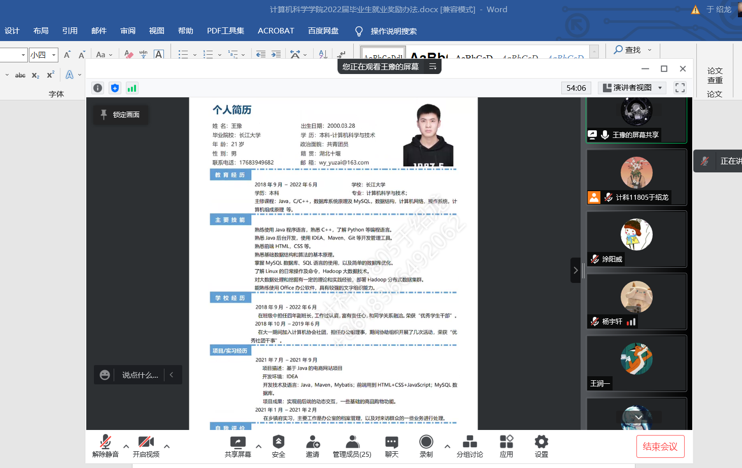 采取线上、线下相结合的方式开展2022届毕业生年级主题班会。会议由党委副书记颜学俊牵头,各班班主任主持,无码影片