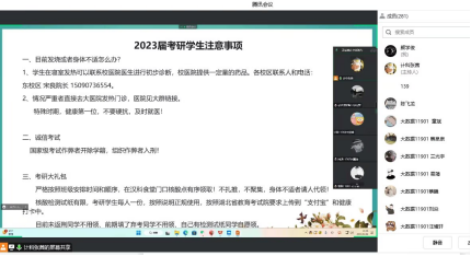 为增强考研学子信心、舒缓压力、积极备考,12月19日计科学院举办“心系学子,研途有你送温暖”活动。学院副书记颜学俊为考研学生举行考风考纪教育大会,并提醒学生在考前这个关键时期要做好个人防护,平安参加考试。