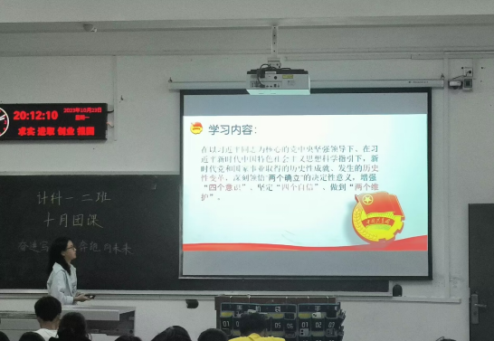 在10月以团支部为单位召开了以此为主题的团会活动,本月示范团支部为计科32301班,团会主题为“奋进写辉煌,奔跑向未来”,主讲人为该班团支书姚烨同学,计科32301班全体同学参加。