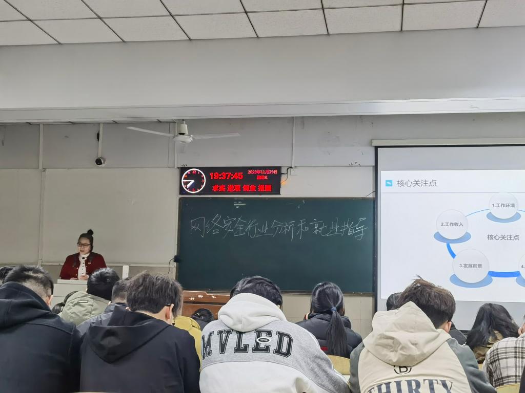 (通讯员 余珺瑞 高昕)无码影片 于2023年11月29日晚上7点,在12教104教室举办了一场以“网络安全发展形势与就业指导”为主题的讲座。本次讲座特邀奇安信集团校企合作部副总监总监闫军霞女士主讲,由网络工程系副主任胡蓉华负责主持。无码影片 副院长陈中举、信息安全专业潘劲松老师以及200余名同学参加。 首先,闫总分析了当前的就业形势。由于应届毕业生就业率降低和企业裁员加剧,毕业生面临着与考研失利学生以及社招人群的激烈竞争。因此,抢占先机至关重要。他建议同学们从大三下学期开始投递简历并进行笔试面试准备,并在大三暑假前进行简历投递。 接着,闫总分享了招聘流程、简历编写等方面的建议,强调了面试前全面准备的重要性,以帮助求职者在竞争中脱颖而出。他还普及了劳动法相关规定,建议求职者了解一些法律知识,为求职者提供全面的保障和指引。 最后,闫总讲解了网络安全的重要性。他指出,网络安全已成为国家战略,每个人都应该重视网络安全。在这个信息爆炸的时代,网络安全不仅是国家安全的重要一环,更是每个人的责任。 此次讲座为正在求职的同学提供了实用的就业指南,增强了他们的就业竞争力。同时,也普及和提高了国家网络安全意识和个人网络安全意识。 审核:陈中举 编辑:余珺瑞