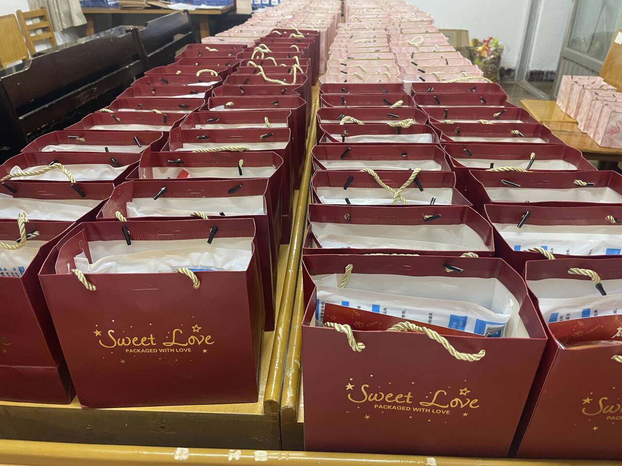 最后,班主任们依次为考研学子送上学院精心准备的考研礼包,里面有研究生学长学姐亲笔手写的“研气满满”的祝福卡片、面包、牛奶、咖啡、士力架、巧克力和口罩,使同学们切身感受到学院的大力支持和深深关爱。