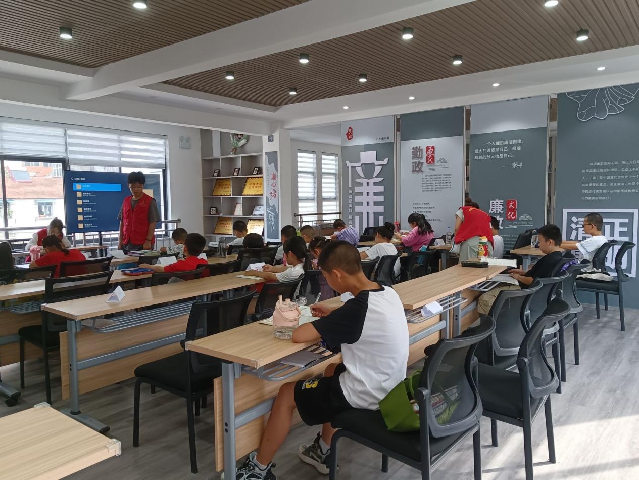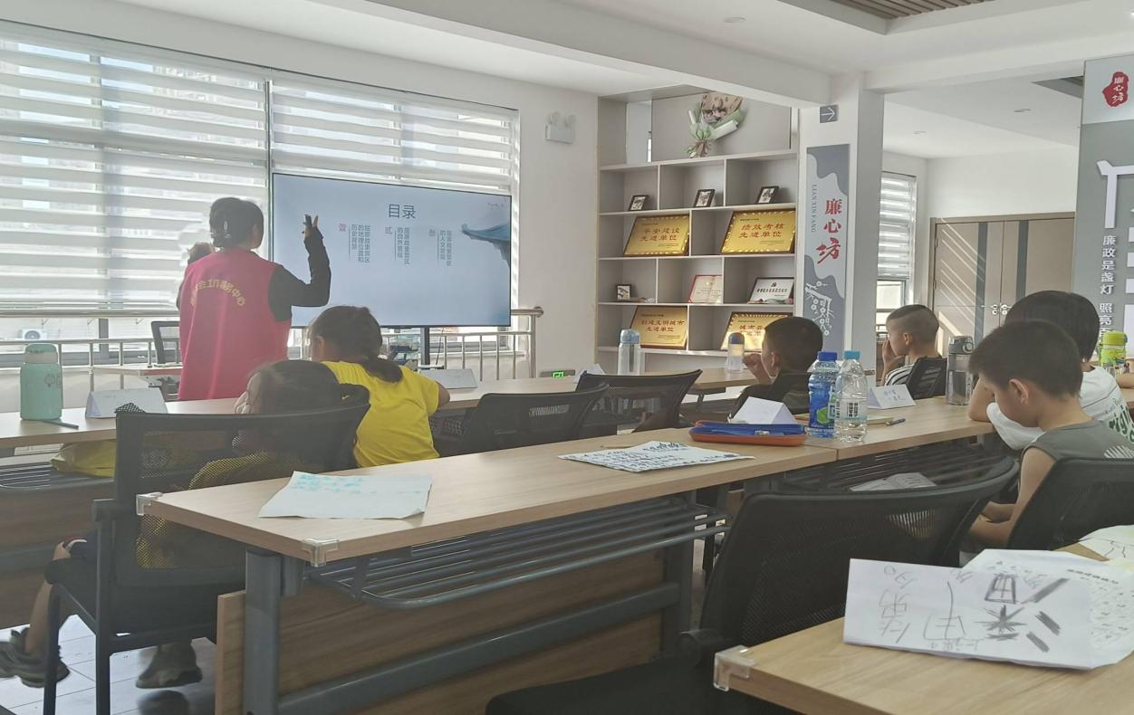 图为志愿者在组织学生开展活动