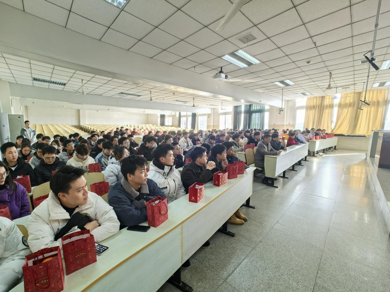 在12教302教室举行2025届毕业生考研送温暖活动暨考前动员会。学院院长崔艳荣老师、党委副书记肖彬老师、毕业班班主任参加此次活动。