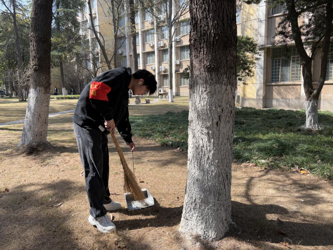 在学院负责老师的带领下,同学们手持扫帚、垃圾夹等工具,对路面落叶、卫生死角进行集中清理。经过一个小时的努力,校园环境焕然一新。