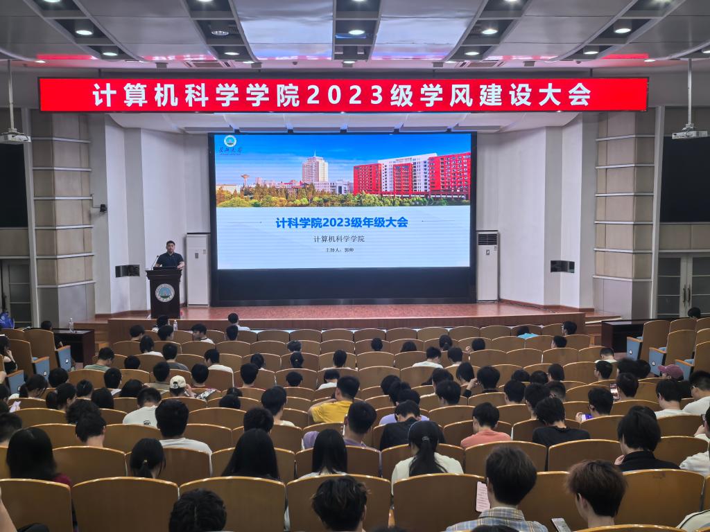 2023级年级大会暨学风建设大会于12教405教室召开。会议由2023级年级辅导员郭帅主持,教学副院长陈中举、分团委书记张茜、年级辅导员王鹏翔、2021级优秀学生代表王鑫锐、研一学生代表王新月及全体2023级学生参会。会议围绕保研、考研、学科竞赛及学风管理等主题展开,为学生提供全方位指导。
