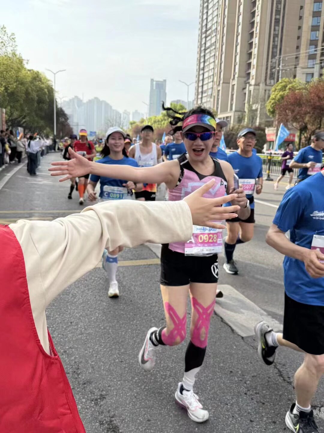随着选手们陆续经过,赛道旁的“红马甲”们挥舞着加油棒,用整齐洪亮的口号为每一位跑者助威。从专业名将到大众跑友,都在这片热烈的欢呼声中备受鼓舞,步伐愈发坚实。志愿者们全程保持着真诚的微笑与充沛的活力,用声声呐喊驱散选手们的疲惫,让赛道因青春的志愿力量而更显温暖与振奋。