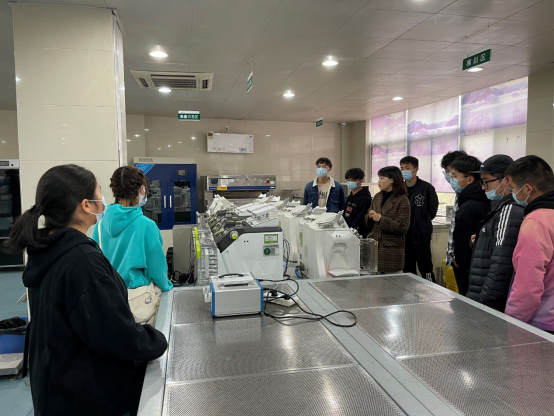 其次,周玉琳老师和祝芳琼老师分两队带领大家实际参观中心血站。志愿者们参观了核酸检测实验室、检验科、成分分离室、血液检测实验室、机采科、贡血成分科,学习到了血液的采集、检验、分离制备及储存发送过程,清晰地认识到了血液的宝贵和献血的意义。