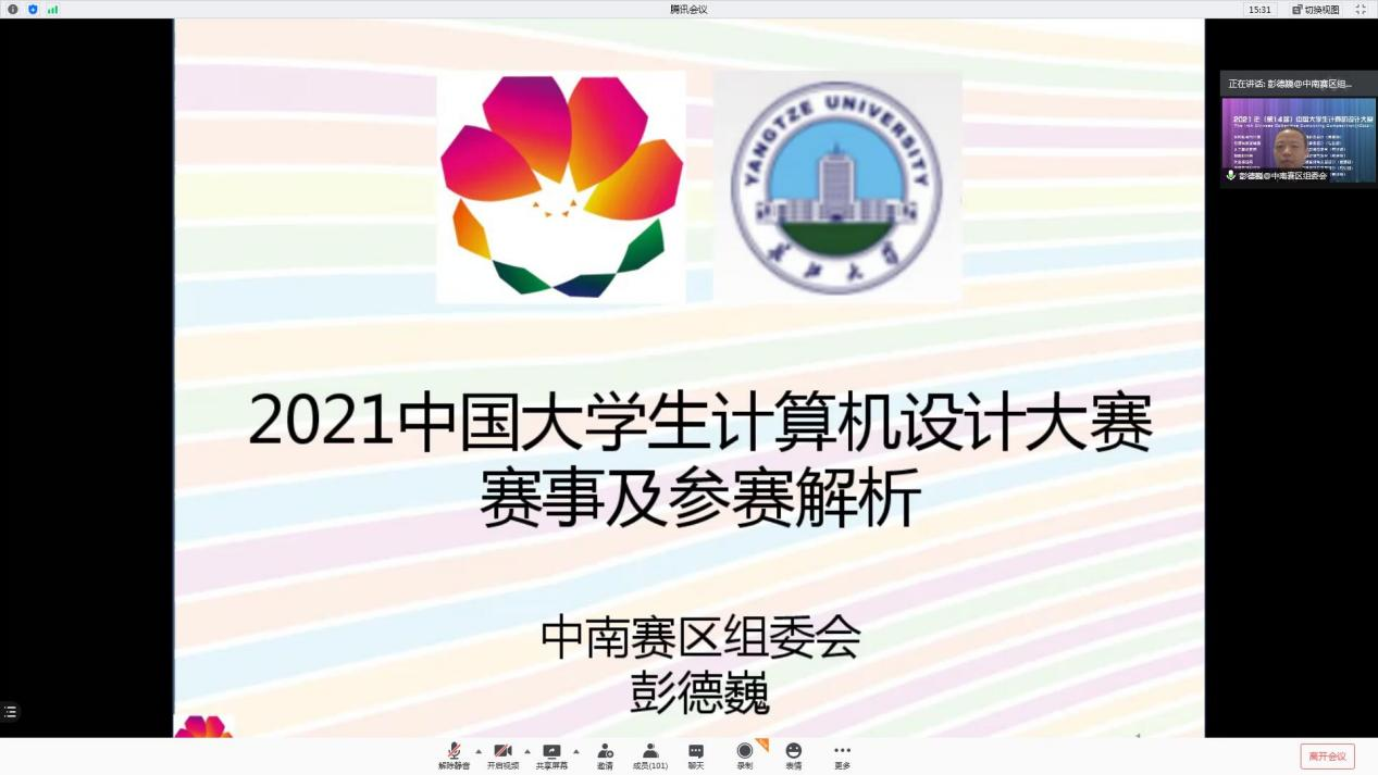 邀请,武汉理工大学彭德巍教授在腾讯会议上,为我校师生作做2021年计算机设计大赛赛事解析和参赛指导,学校参赛老师和同学参加了此次讲座。