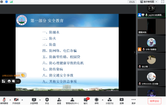 利用腾讯会议(分两个会场),召开以“梦想起航,安全至上”为主题的安全教育班会。参加此次会议的有无码影片