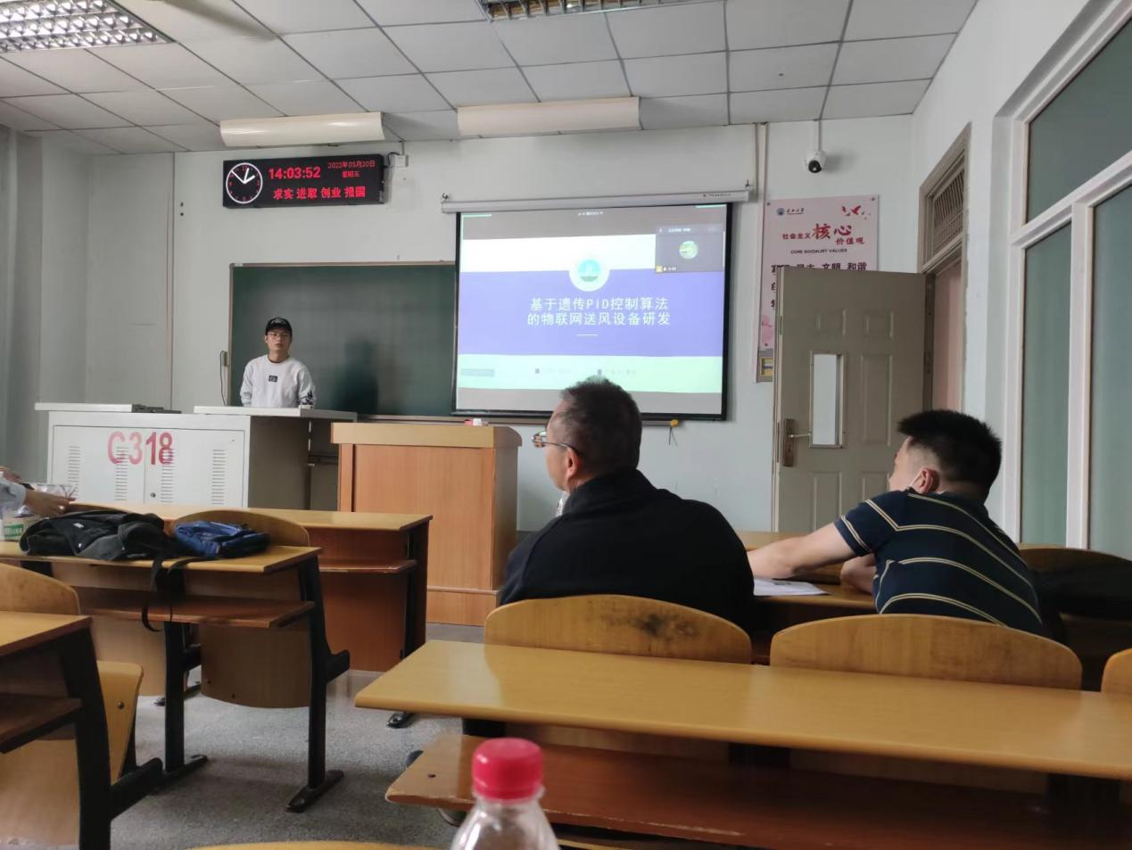 3位研究生依次登台演讲,分别围绕各自的研究方向,为同学们分享了3个课题:基于遗传PID控制算法的物联网送风设备研发、基于深度学习的小目标检测算法、岩心图像拼接方法研究等内容。学术论文报告会已经成为同学们知识共享和传播的一种重要方式,在演讲过程中,导师与听众和演讲人针对相关研究成果互动、探讨。每名研究生演讲完后,两位导师从全方位对演讲学生的汇报进行仔细点评,对其研究内容可能遇到的科研困难进行指导,通过点评有效促进了研究生的成长。