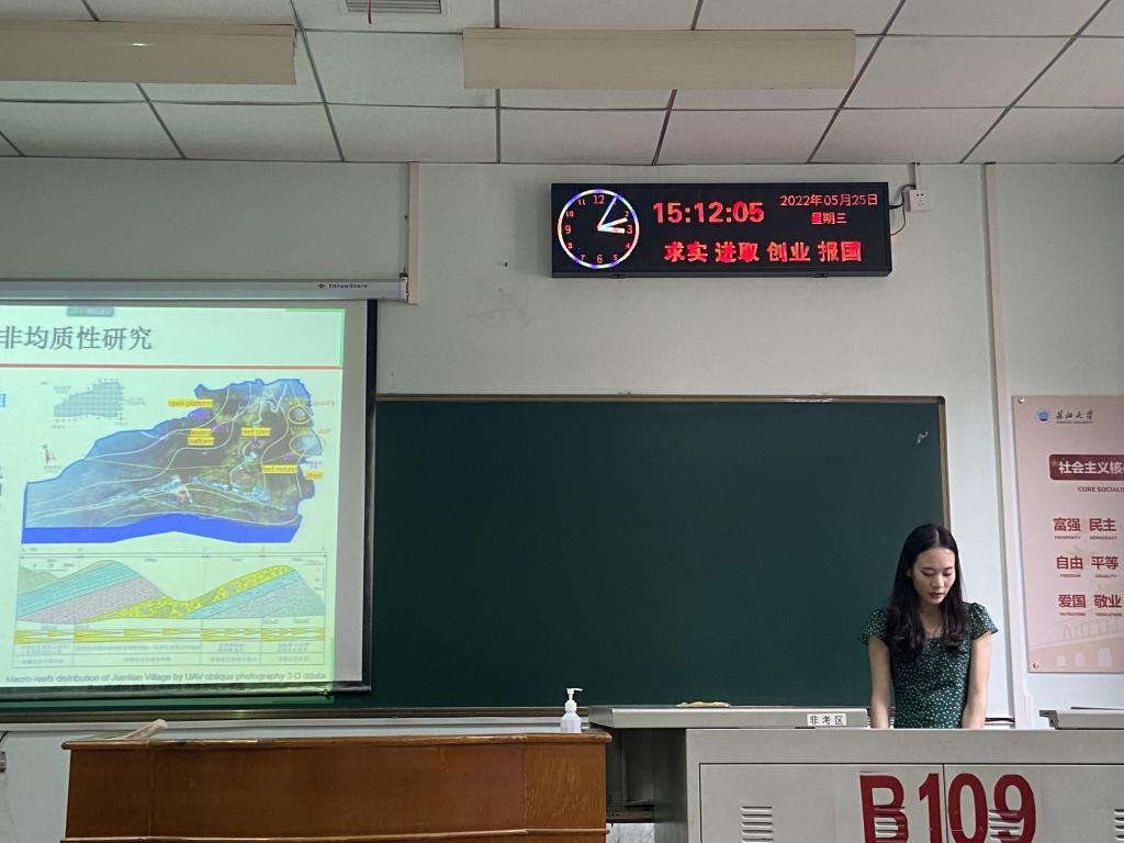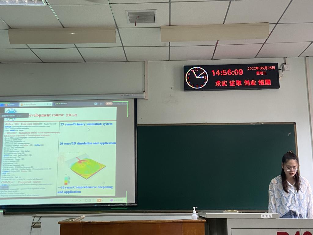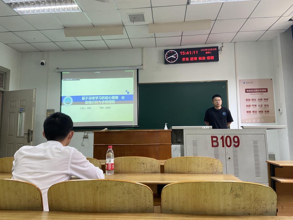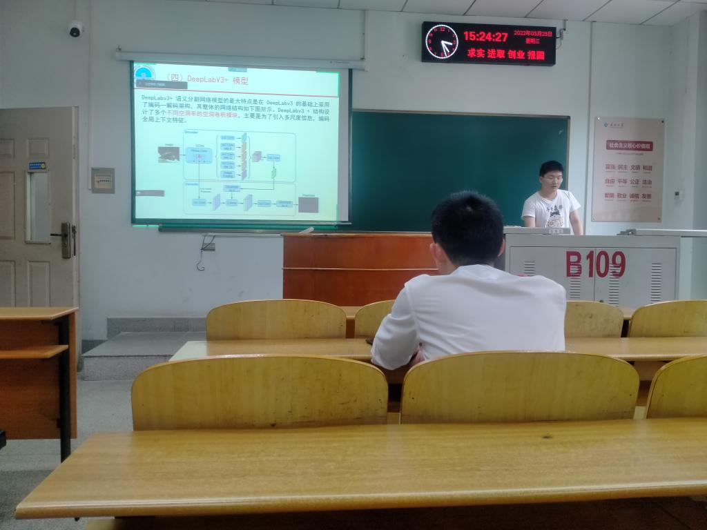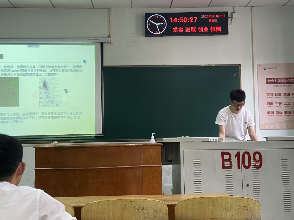 9位研究生依次登台演讲,分别围绕各自的研究方向,为同学们分享了9个课题:英特尔处理器虚拟化技术,Differentiated Key- Value Storage Management for Balanced I/O Performance,基于深度学习的海上溢油检测,基于无人机倾斜摄影的页岩露头表征,碳酸盐岩露头多尺度非均质表征——以鄂西利川见天坝为例,基于语义分割算法的露头照片岩性识别,An Image is Worth 16×16 Words:Transformers for Image Recognition at Scale,基于深度学习的岩心图像裂缝识别和参数提取,基于深度学习的行星齿轮箱的工况预警和故障分析。