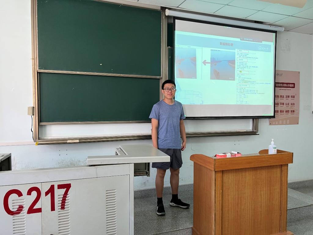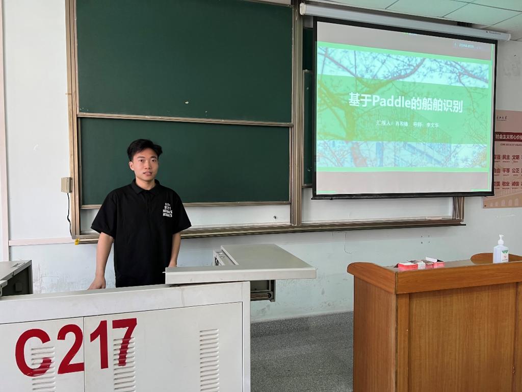 8位研究生依次登台演讲,分别围绕各自的研究方向,为同学们分享了8个课题:基于DeeplabV3+的叶片病害分割、船舶相似度识别、船舶目标检测、基于paddle的船舶识别、基于改进YOLOv5的算法研究、深度置信网络DBN、航道视频拼接融合技术、图像分类的方法研究与应用。