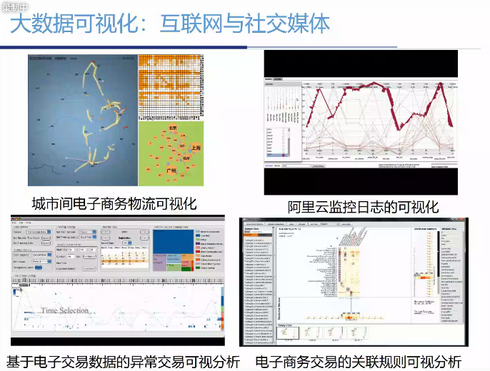 师生介绍了数据可视化的基本概念以及大数据时代下的可视分析的内涵,阐述可视化学术界的近期关注重点,并展示面向金融、安全、智慧地球、商业智能、数据新闻等应用的可视分析案例。