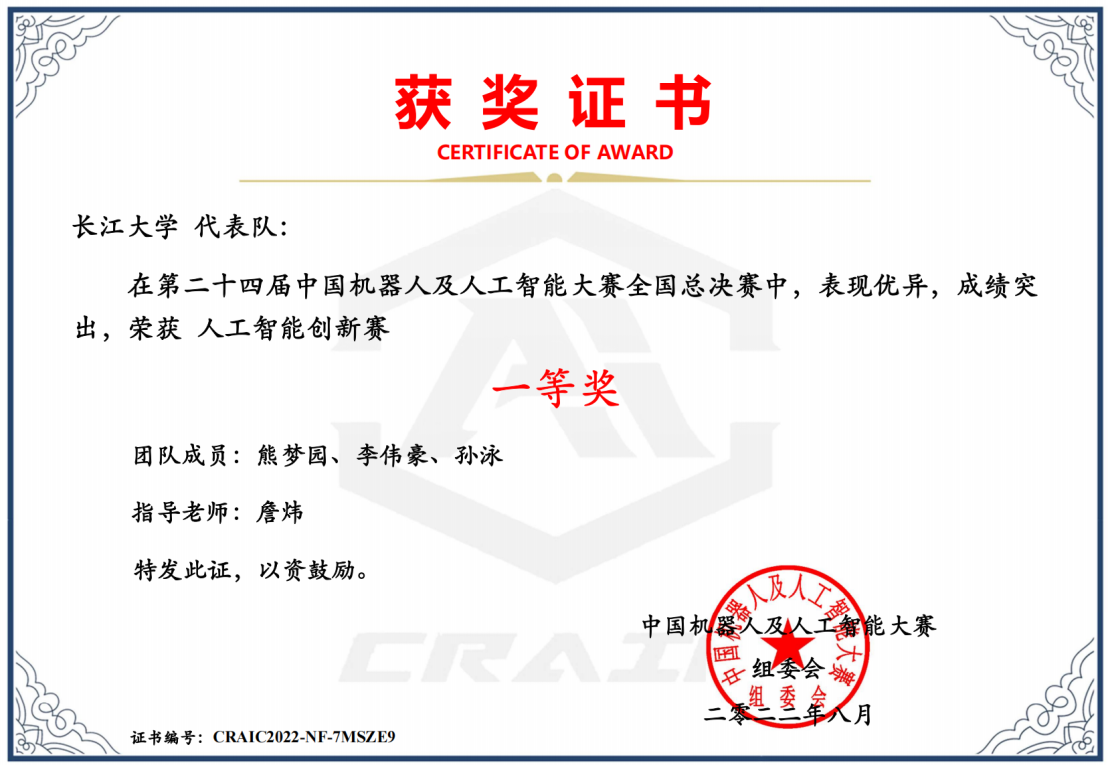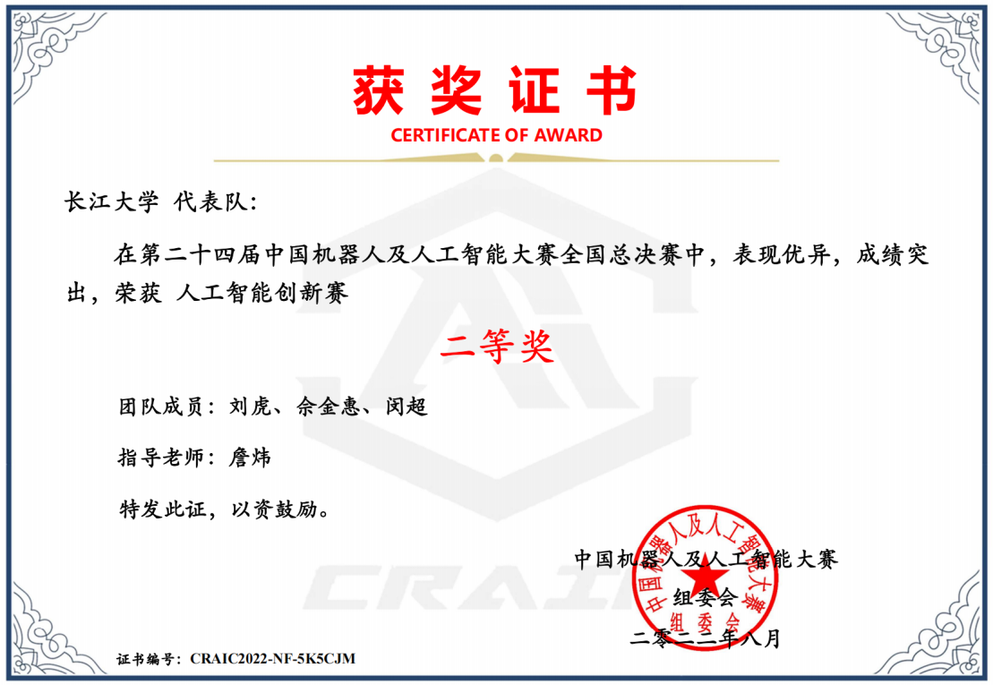 研究生团队的“智慧航运——无人机智能船舶水尺读数系统”和“智慧巡检——基于移动端的无人机对地小目标检测与应用”两项作品分别获得全国一、二等奖,展示了长大计科学子在“人工智能+”应用领域的创新实力。