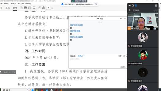 新学期新的开始,为了提升学生的思想政治素质,加强学生的防诈骗意识,让学生敬畏生命,关爱健康。根据学校《关于开展 2023 年秋季开学前主题班会的通知》的要求,学院决定在各本科班级和研究生班级,同步召开开学前线上主题班会。