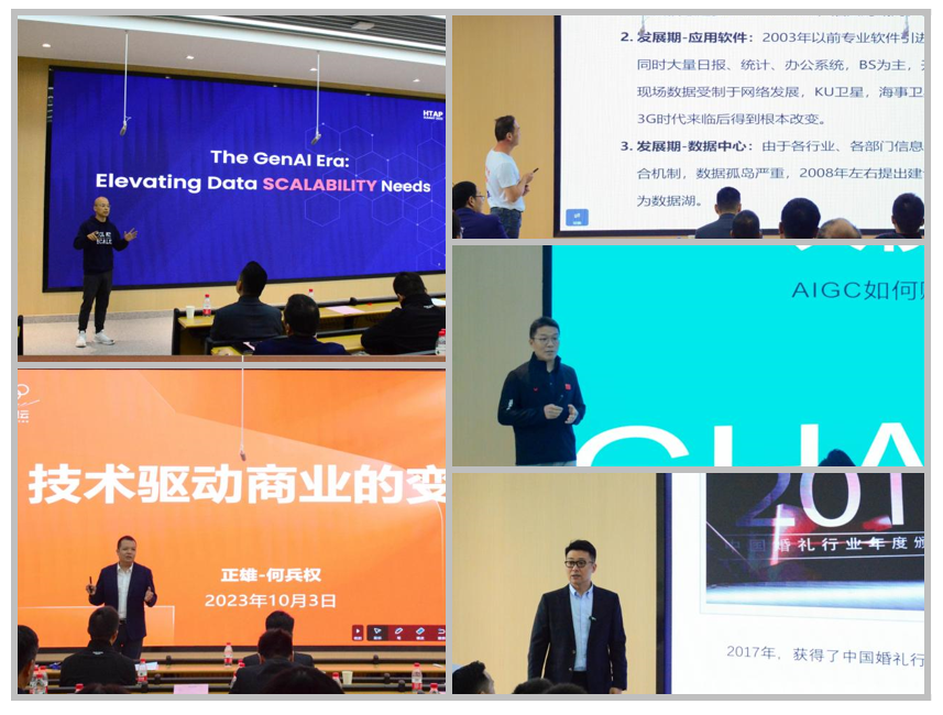 在校友论坛环节,威万文化集团董事长郭亮,山东谦和云科技有限公司董事长王青海,机械工业出版社华章分社部门总经理杨福川,杭州智创数实教育科技有限公司创始人、总经理何兵权,企业级开源分布式数据库公司PingCAP创始人、CEO刘奇分别围绕创业、油田信息化、大模型时代的AIGC、技术与商业变革、Database SCALABILITY等领域作了精彩的主题报告。