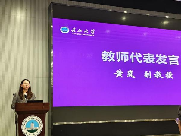 教师代表黄岚与同学们分享了大学阶段的学习感受,希望同学们学好基础知识,掌握专业技能,提升程序设计实践能力,为将来职业发展打牢基础。