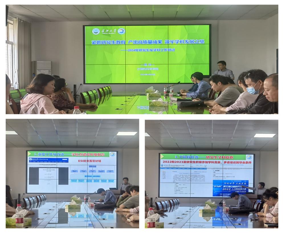 詹院长从年度目标任务总体出发,介绍了2024年研究生教育教学常规指标以及发展性指标,希望以此目标任务为基础,保质保量的开展研究生教育工作。同时全面分析了当前研究生毕业资格审核、盲审反馈、新生拟录取、学位点周期性核验等重点工作,并针对难毕业、难产出等问题提出相应的指导意见。会上导师们就学生培养工作展开了激烈的讨论。