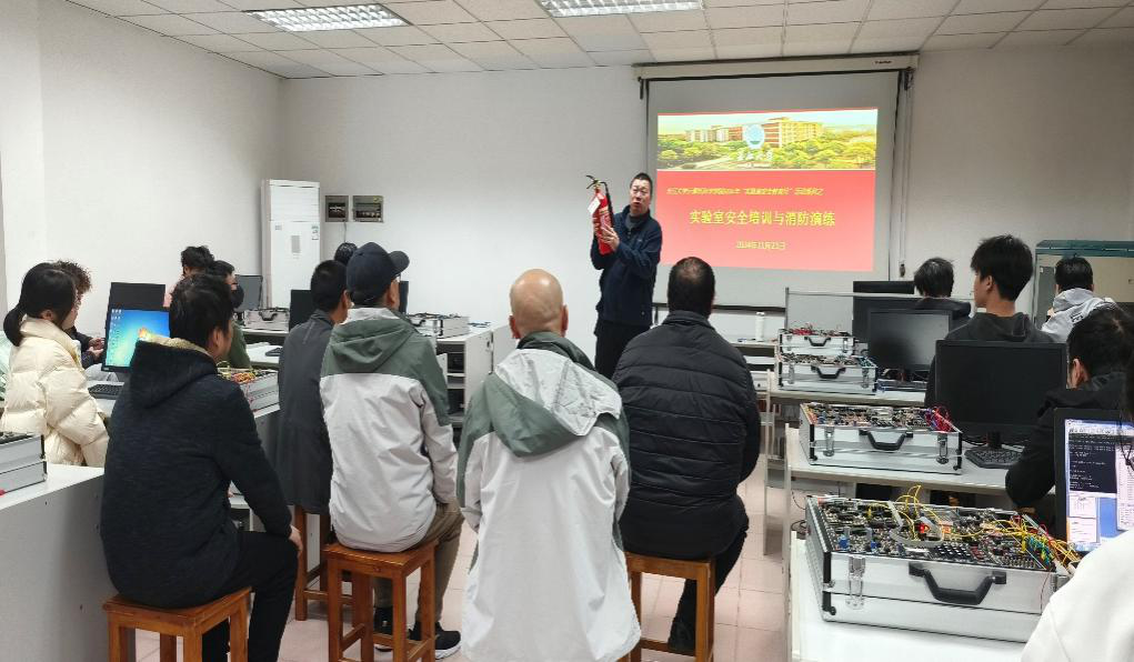 3.组织了学院实验室安全培训。王剑主任给参与培训的老师和学生介绍了相关的实验室安全知识,并详细讲解了二氧化碳灭火器的使用方法。