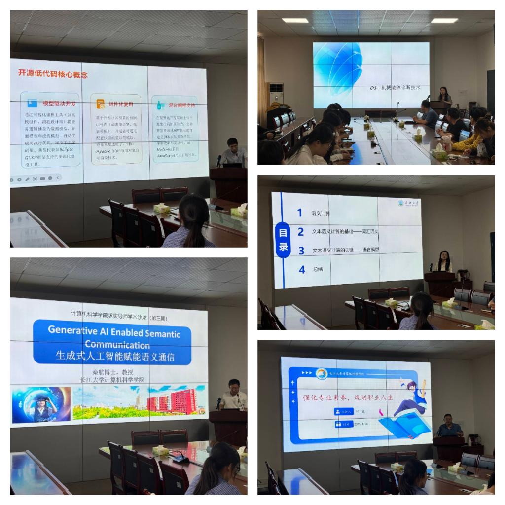 2025年4月30日下午,求实导师学术沙龙第三期在5教501顺利举行,吸引了50名学生踊跃参加。本次沙龙汇聚了多位学术导师,围绕开源开放模式的智能低代码平台、人工智能赋能机械部件的智能预测性维护、语义计算与语言模型、生成式AI语义通信以及研究生专业素养和职业规划等前沿话题展开深入探讨,为师生们带来了一场知识与智慧的交流盛会。 陈中举老师以“开源开放模式的智能低代码平台研究”为题,指出低代码平台凭借其可视化编程和模板化开发的优势,极大地降低了软件开发的门槛,使得更多非专业人员能够参与到软件开发中来。通过开源社区的力量,开发者们可以共享资源、协同创新,进一步提升平台的灵活性和可扩展性。 叶青老师带来的“智护先锋——人工智能赋能机械部件的智能预测性维护”主题分享。她详细介绍了如何通过对大量历史数据的分析和模型训练,促使系统提前预警潜在故障,从而帮助企业优化维护策略,降低维护成本,提高生产效率。 黄岚老师以“语义计算与语言模型”为主题,带领大家走进了自然语言处理的前沿领域。她深入讲解了语义计算的基本概念和核心方法,强调了语义理解在实现人机高效交互中的关键作用。 秦航老师在“生成式AI语义通信”的分享中,探讨了生成式人工智能在通信领域的创新应用。他指出,传统的通信模式主要关注信息的传输效率和可靠性,而生成式AI的引入则为通信赋予了新的内涵。 付盈老师则从研究生专业素养和职业规划的角度出发,为学生们带来了一场极具启发性的讲座。他强调,研究生阶段不仅是学术能力提升的关键时期,更是职业规划的重要起点。他还详细介绍了不同专业方向的就业前景和职业发展路径,为学生们提供了实用的职业规划建议。 本次求实导师学术沙龙第四期活动在热烈的讨论氛围中圆满结束。5位导师的精彩分享不仅涵盖了前沿技术的最新研究成果,还关注了研究生的职业发展需求,为学生们提供了全方位的知识滋养。通过这次活动,学生们不仅拓宽了学术视野,深入了解了各领域的前沿动态,还对自身的职业规划有了更清晰的认识。相信在导师们的引领下,学生们将在未来的学术和职业道路上不断探索、勇攀高峰,为相关领域的发展贡献自己的力量。 (审核 詹炜,编辑 陈媛)