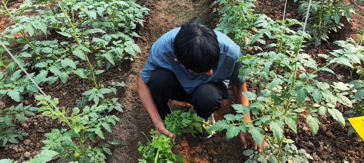 清晨的大棚内闷热难耐,志愿者们跟着当地李大姐学习采摘技巧——看西红柿的颜色与硬度判断成熟度,轻扭果柄避免损伤藤蔓……汗顺着下巴滴进泥土,十分钟,衣服拧得出水;可筐里果实越垒越高,像给土地回敬一座小小的宝塔。