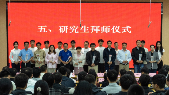 典礼现场最受瞩目的环节,当属庄重的拜师仪式。2025级研究生依次向各自的导师深深鞠躬,并献上代表感恩与敬意的鲜花。这一“躬”,承载着对学术传统的敬畏;这一“献”,传递着对知识传承的承诺。简短而隆重的仪式,不仅让“尊师重道”的优良传统在现场落地生根,更标志着全体新生研究生涯的正式开启。