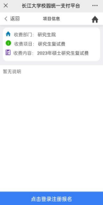 3、 点击“报名项目”后,选择“2023年硕士研究生复试费”: