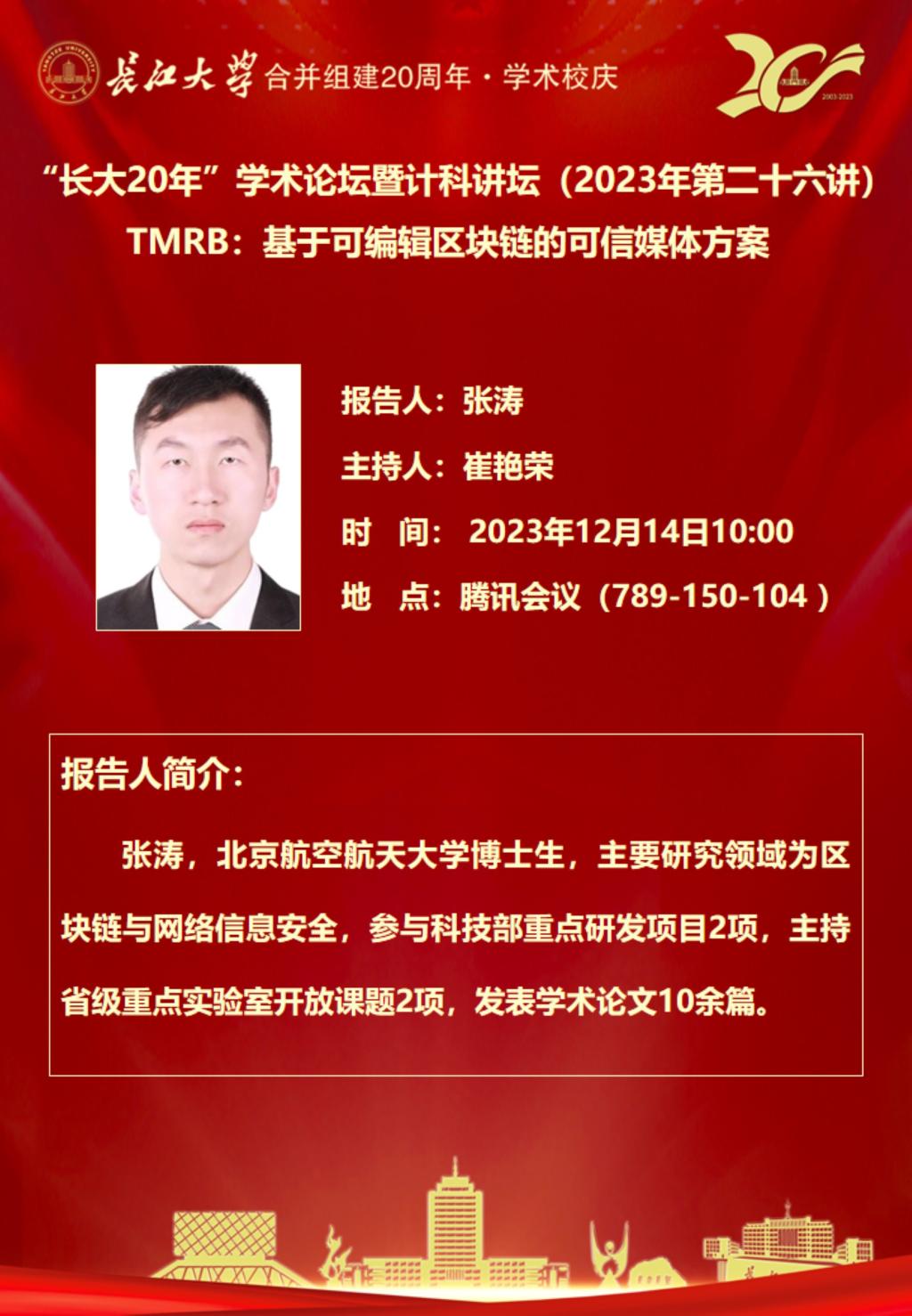 计科讲坛(2023年第二十六讲):TMRB:基于可编辑区块链的可信媒体方案