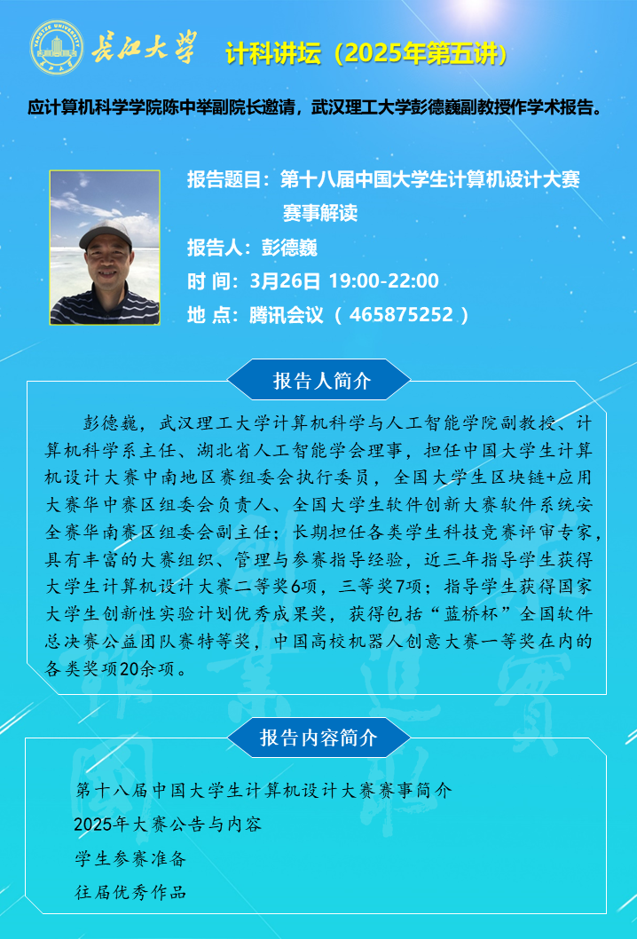 计科讲坛(2025年第五讲):第十八届中国大学生计算机设计大赛赛事解读