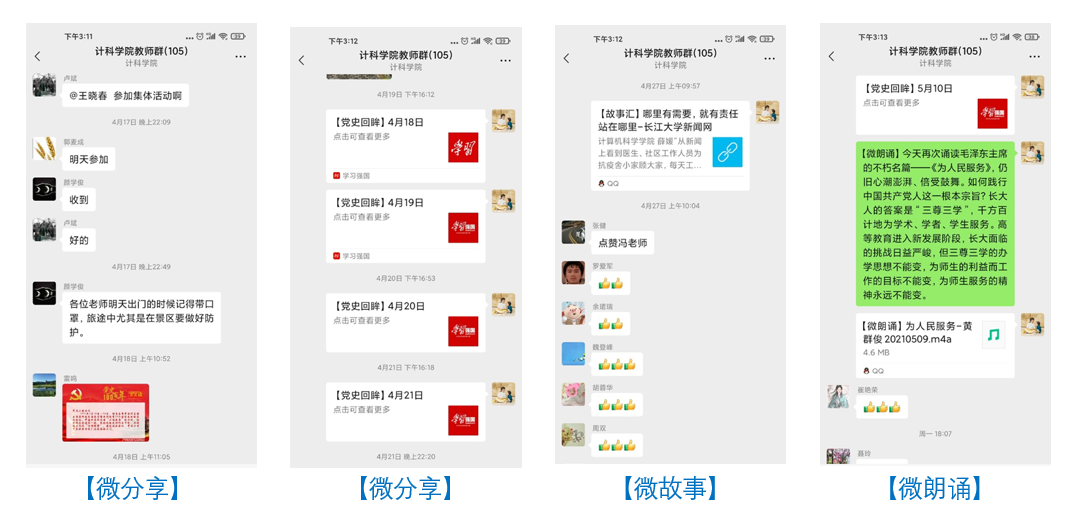 学院党委加强分类指导,细化推进措施,创新学习形式,切实增强党史学习教育的针对性和有效性。分层分类同促进。加强全院政治理论学习,把开展党史学习教育作为“三会一课”、主题党日等组织生活的重要内容。组织专题读书班,抓住党员领导干部这个“关键少数”。同时以入党积极分子培训为契机,通过党史专题讲座为学生党员打好学习基础。线上线下齐发力。充分利用学院网站、宣传橱窗、LED电子屏等,广泛开展党史学习教育宣传。组织 “微分享、微朗诵、微故事”党史学习教育,带领广大党员回眸每日党史、诵读经典名篇、分享身边故事,让学院微信群成为学习教育的移动“资源库”。另外,积极引导党员干部参与《学习强国》和《湖北省干部在线学习中心》专题学习。