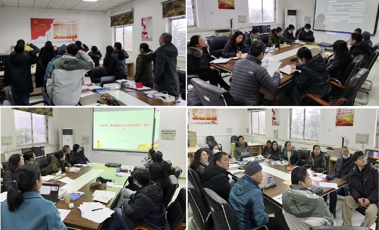 院党委强调支部在学习过程中,内容应结合本职工作,学习应具有延续性,对容易忽略或思想上未能引起重视的内容,要逐一进行强化,确保学习无遗漏。结合这一要求和党员教师的实际情况,支部邀请校党委组织部沈谦同志对《事业单位工作人员处分规定》的文件精神进行了详细解读,目的在于警示党员教师在实际工作中应规范自身行为,坚守职业道德,牢固树立政治意识,把政治标准放在首位。