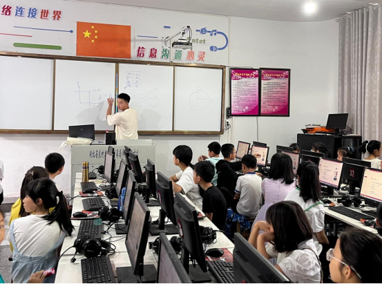 如何高效地开展教学?这是摆在支教队员面前的首要问题。根据实际校情和学情,支教队员到达当晚就迅速组织了一场集体备课,开启头脑风暴。“我认为可以从简单的游戏制作着手……”“我们可以组织一次摸底测试,了解学生的实际水平。”很快,支教队员就制定出教学计划,基于学生的实际水平,将编程夏令营分为基础班和进阶班两个班级分开授课。基础班教学主要是针对零基础学生,从最基础的电脑硬件使用和程序介绍开始,而进阶班则教学生进行更为复杂的编程项目操作。至此,每晚的集体备课成为了常态,讨论、反思、总结、提高,支教队不断摸索创新授课方式。